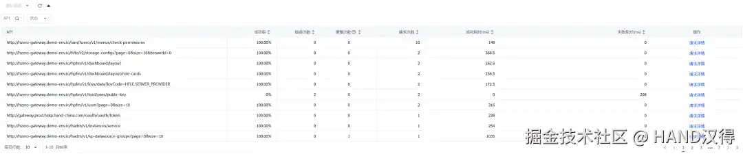 - 请求汇总,直观评估接口健康状况:统计 API 的调用次数、成功率、失败率、慢请求次数及平均耗时,支持按各类指标排序,快速识别异常或性能瓶颈接口。