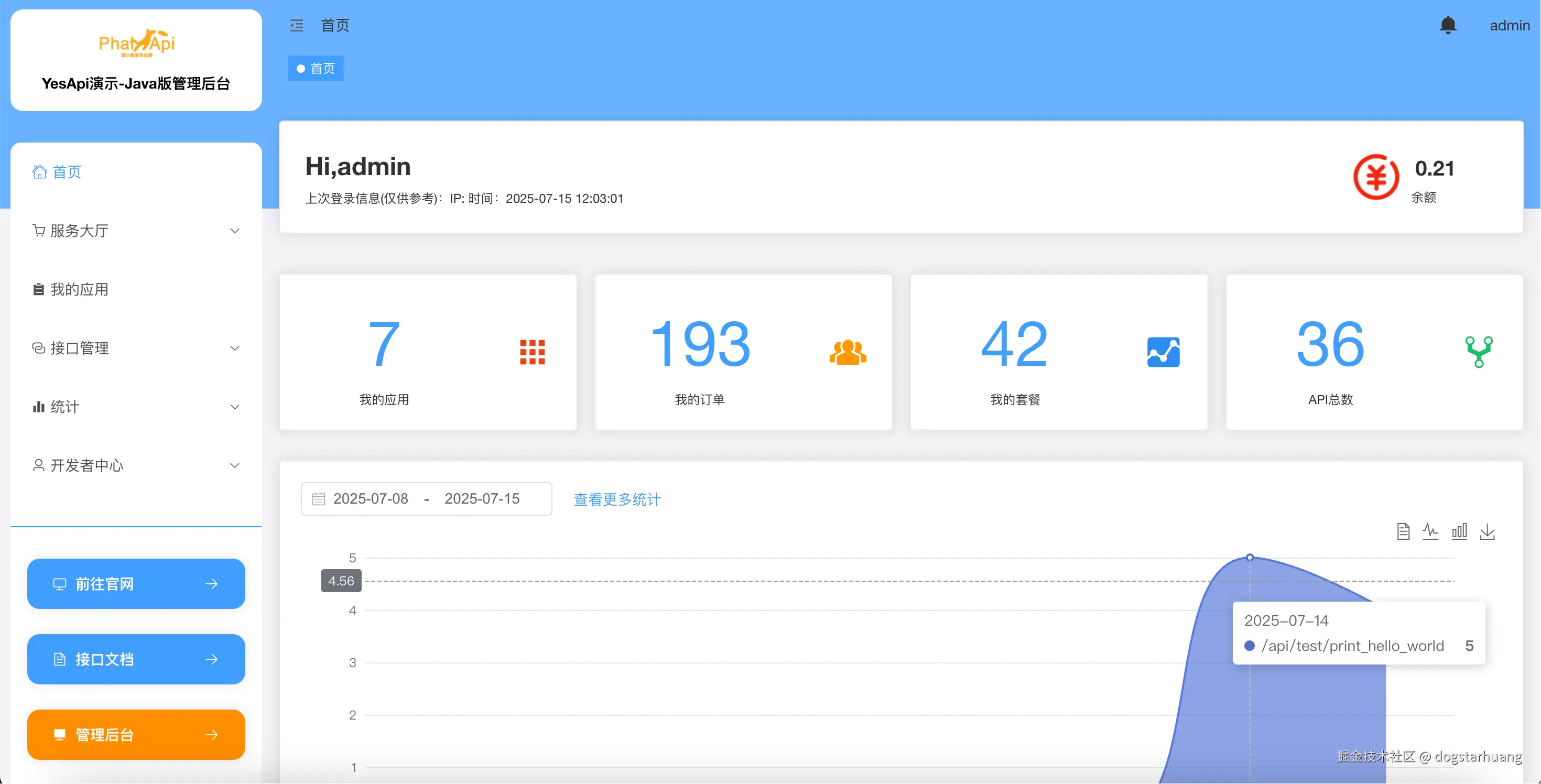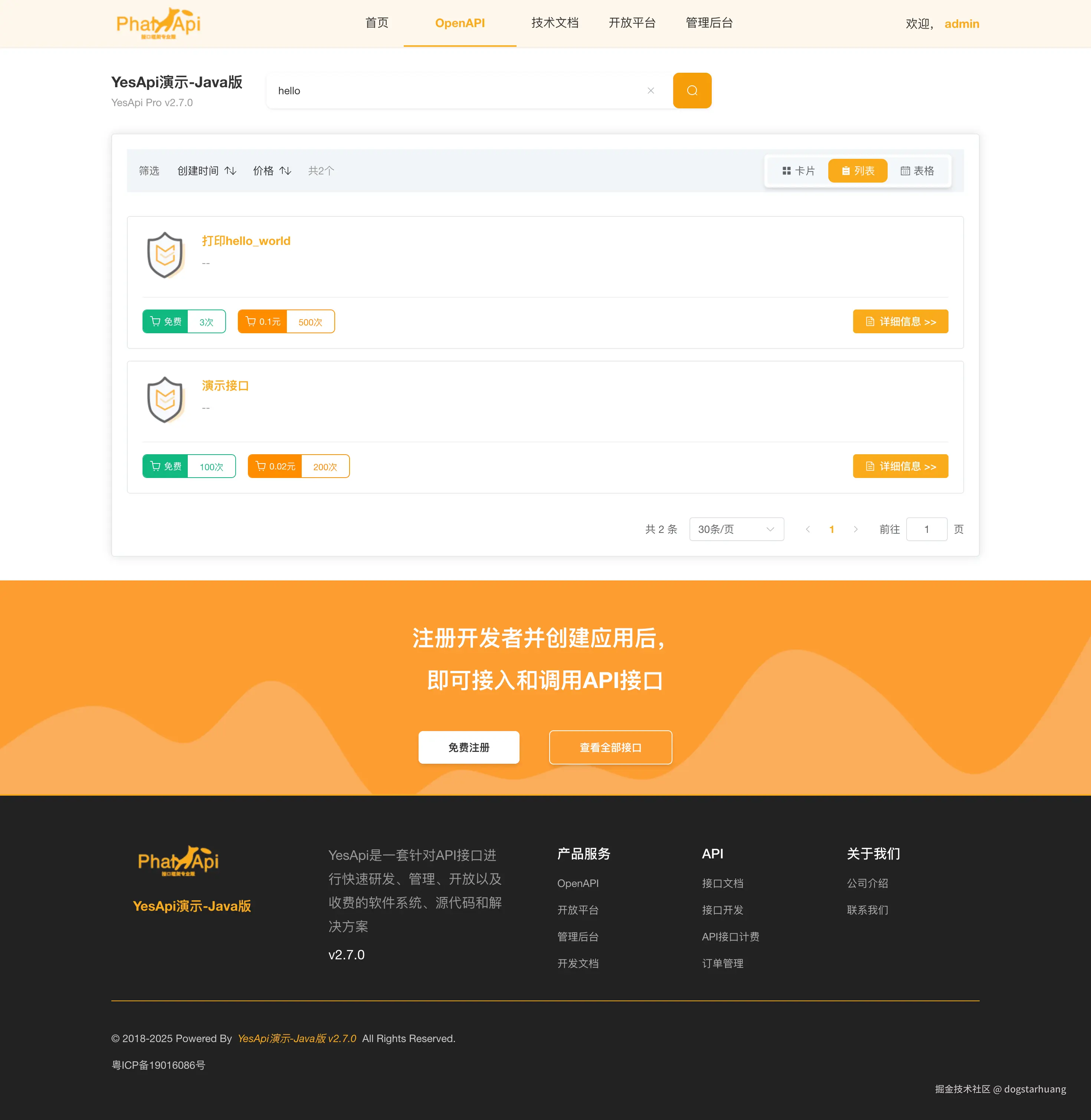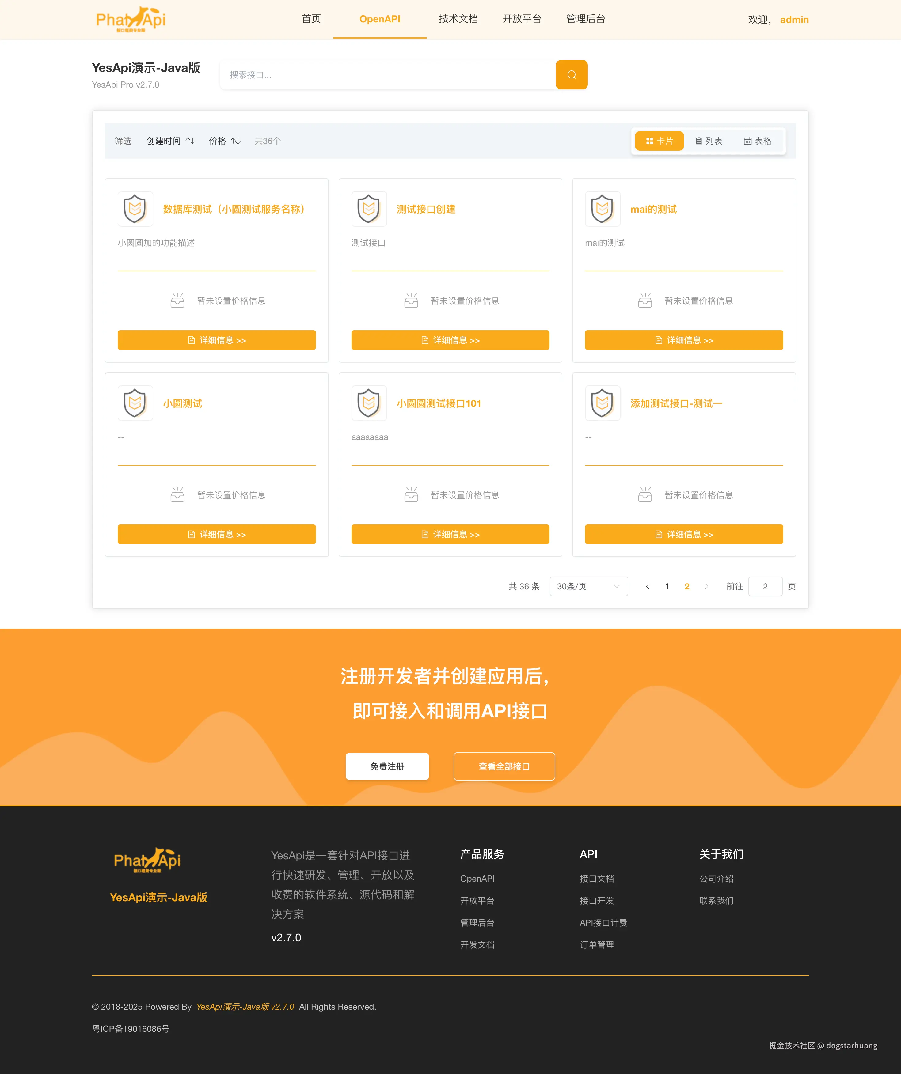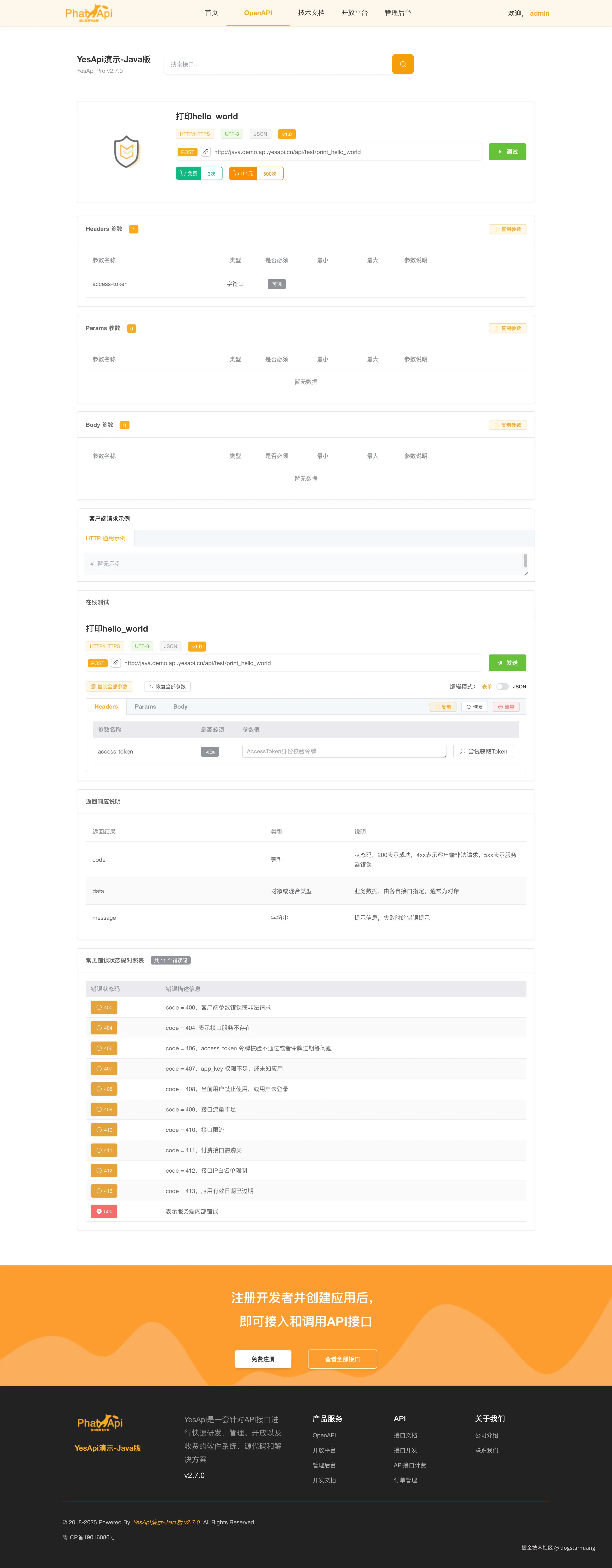 YesApi Pro Java版本 v2.7,可搭建:API接口管理平台 / 接口开放平台 / 接口服务平台,是一套针对API接口 快速研发、统一管理、对外开放以及收费的软件产品、源代码和解决方案。