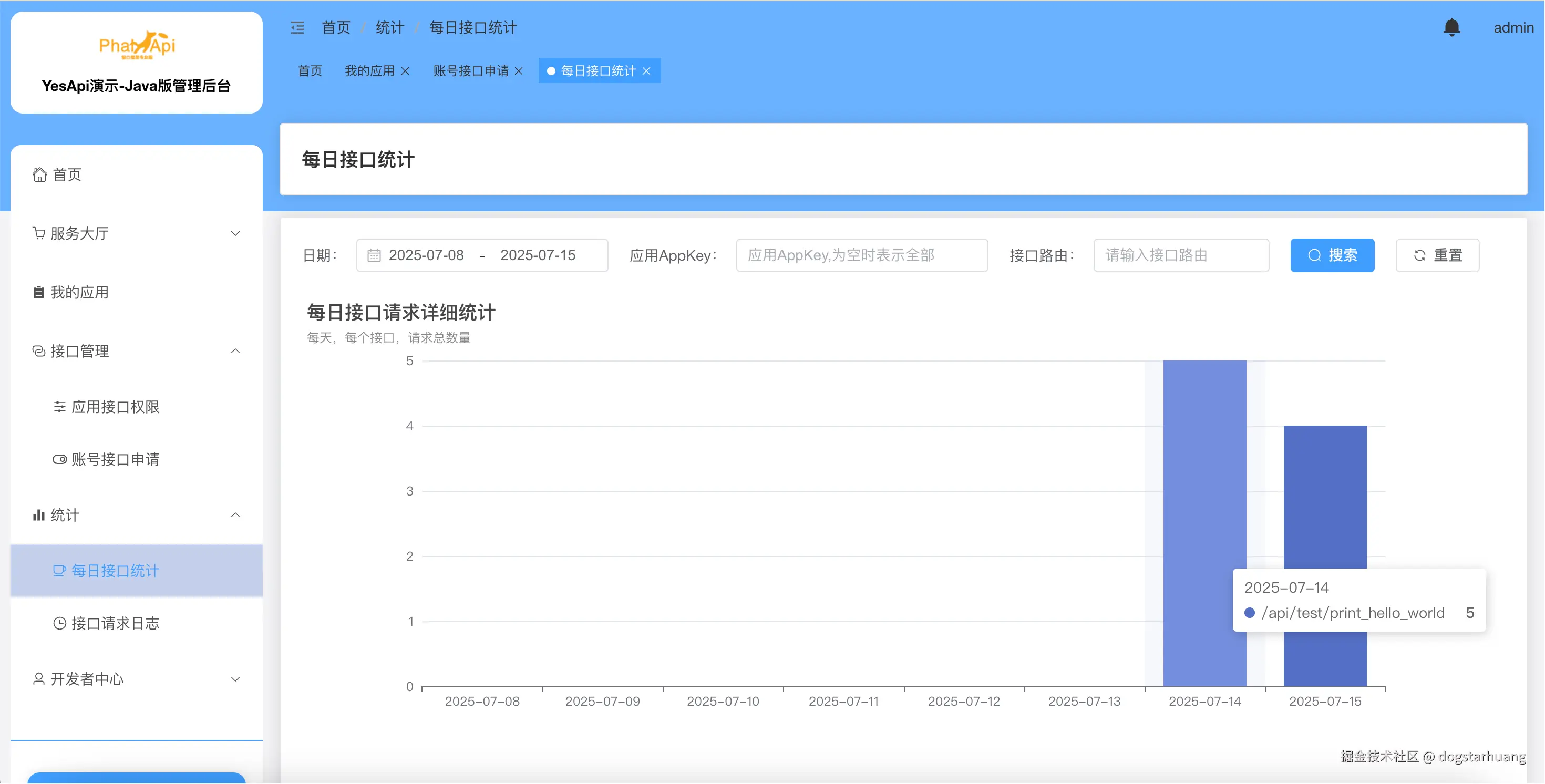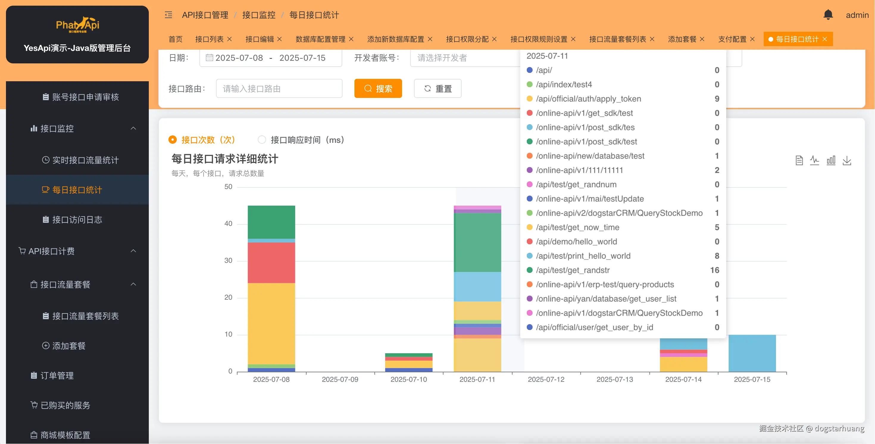 API接口监控,包括:接口请求日志、接口统计、接口异常等。