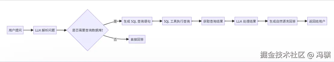 回到刚才的例子里,假如现在老冯又让小冯来写程序了,这次要基于 LLM 的来实现自然语言成绩查询(蹭热度!)。小冯思考了下,这是一个 text2sql 的场景嘛!他的逻辑大概是这样: