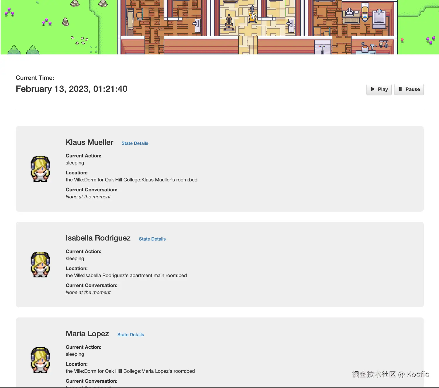 打开 http://localhost:8000/replay/July1_the_ville_isabella_maria_klaus-step-3-20/1/开始 replay。