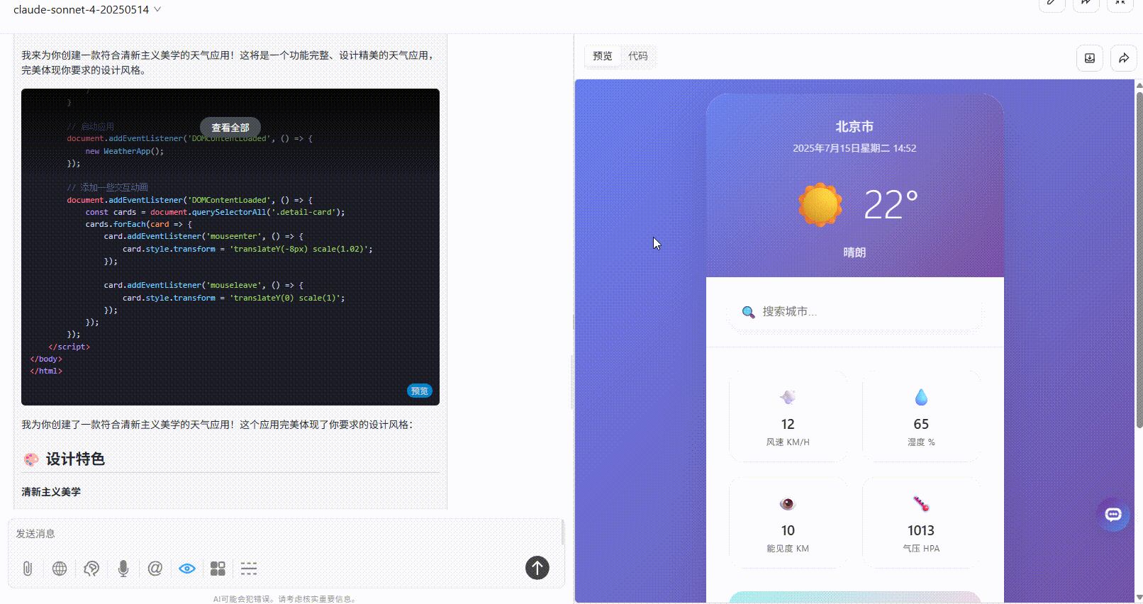 请帮我生成一款天气应用,使用前端代码,不要生成React