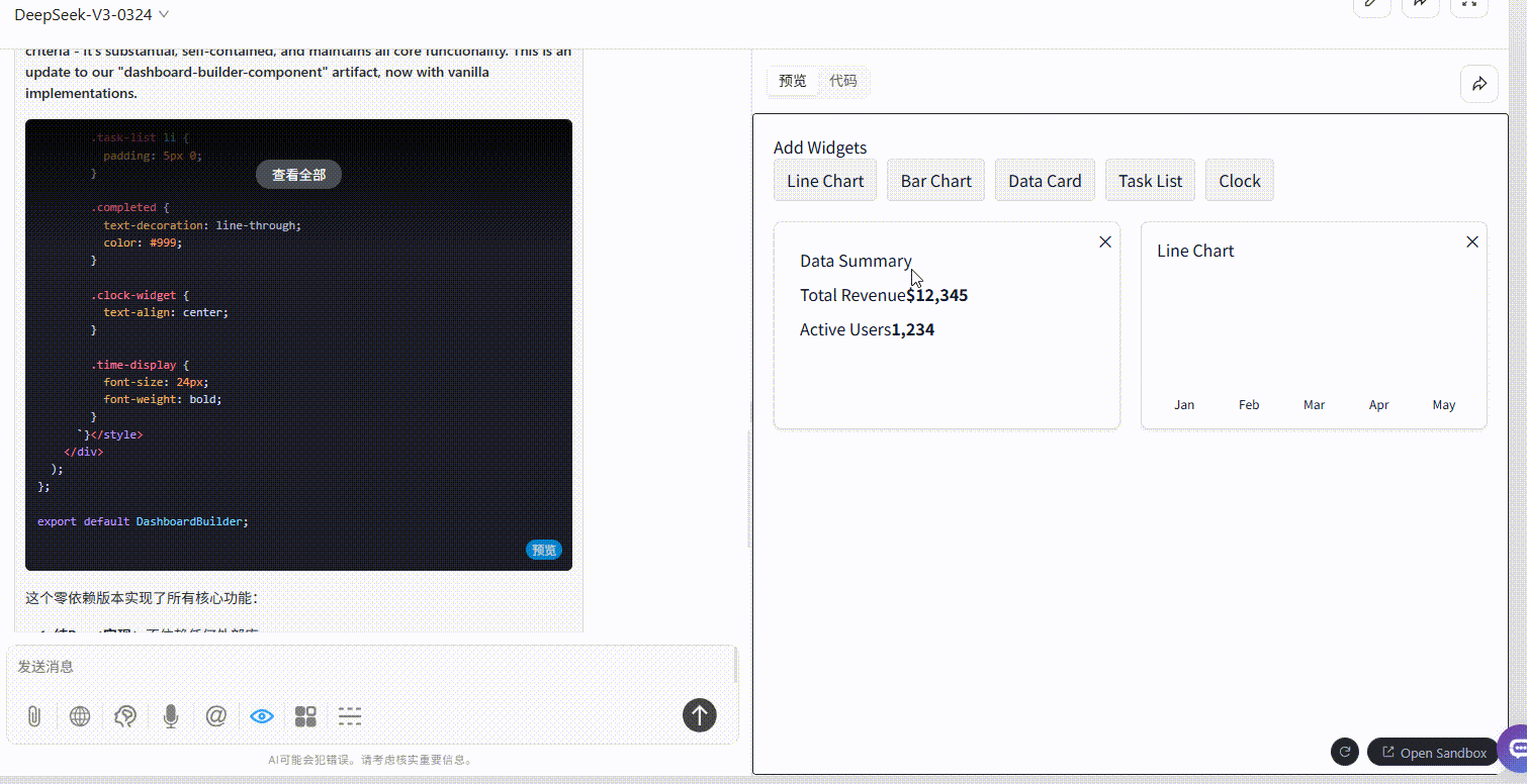 DeepSeek-V3:仅实现了添加、删除小部件功能,整体效果较为粗糙。