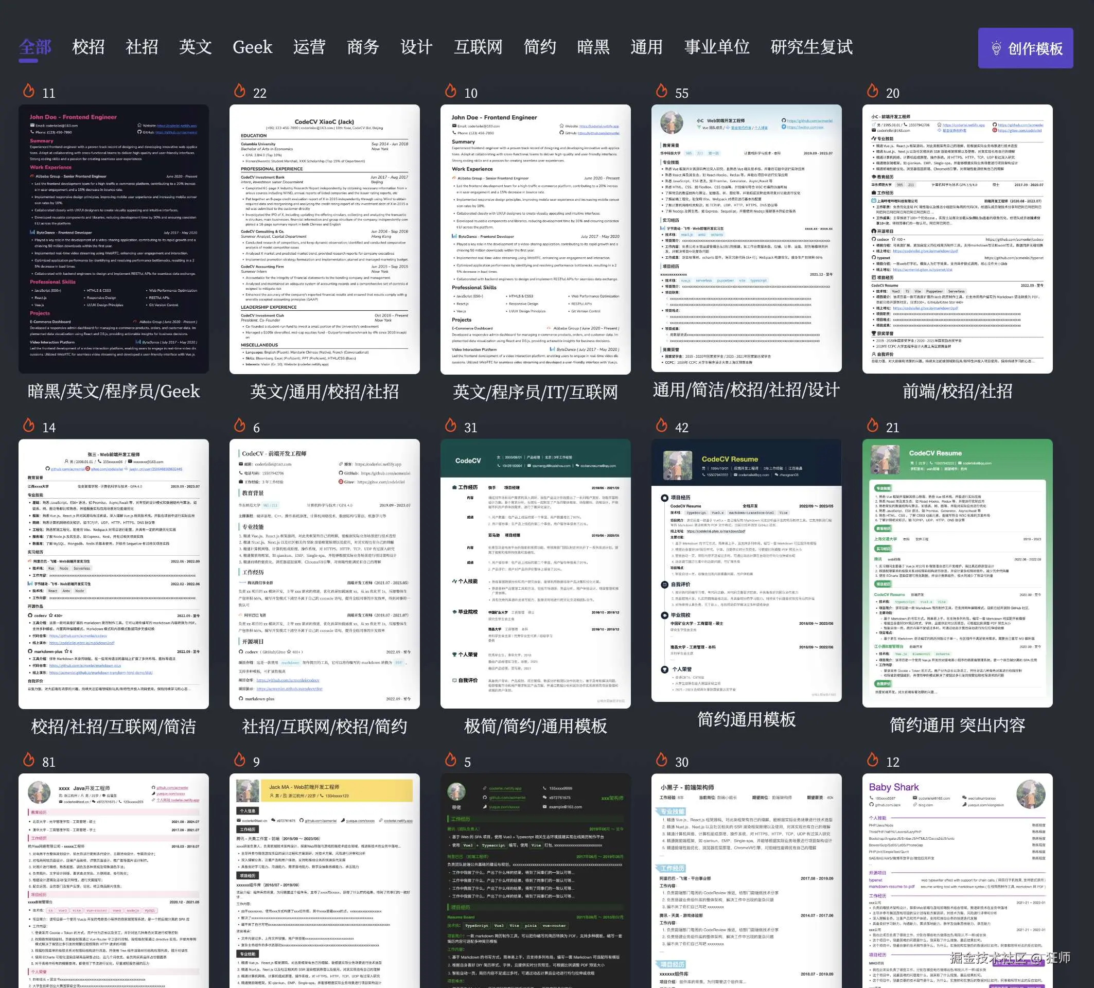 - 提供了大量精美的简历模板,涵盖多种风格和行业需求,总有一款适合你。