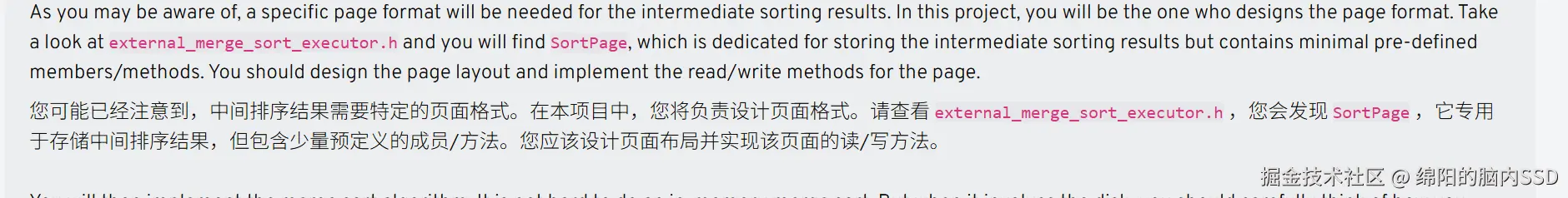 然后, 文档中也要求我实现MergeSortRun, 这个MergeSortRun其实就相当于表堆, 只不过它是SortPage的表堆, 记录了在该堆内所有的页ID。 MergeSortRun里面有该表堆的迭代器指向SortPage的元组位置遍历SortPage。所以, 迭代器需要能够读取SortPage,那么就需要能够获取SortPage, 利用ReadPageGuard获取SortPage的读指针。 所以这里也要有一个GetPage函数。