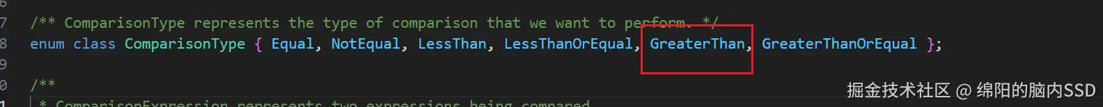 - 对于CompareExpression,如果表达式是age > 18这种。那么里面的CmpType 就是GreaterThan。 age作为ColumnExpression就是CompareExpression的左子树;18作为ConstantExpression就是CompareExpression的右子树。
