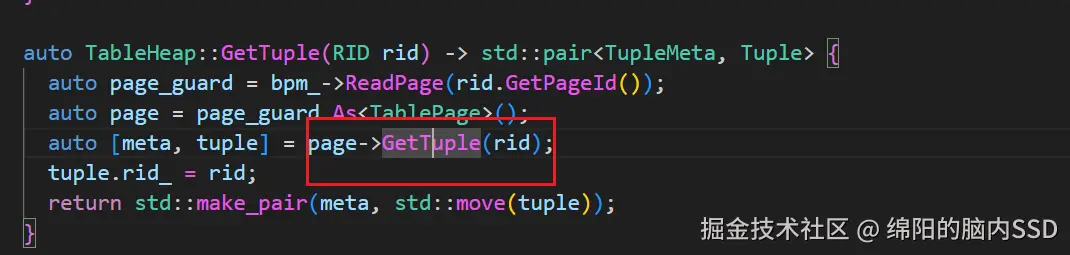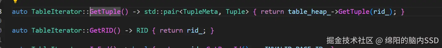 调用的就是表堆的表堆的GetTuple。而表堆去调用的table_page的GetTuple。 (写到这里, 我忽然发现, 我在SortPage中, 是否可以仿照table_page的设计, 添加一个next_page_id。这样迭代器在++的时候会更加好处理)