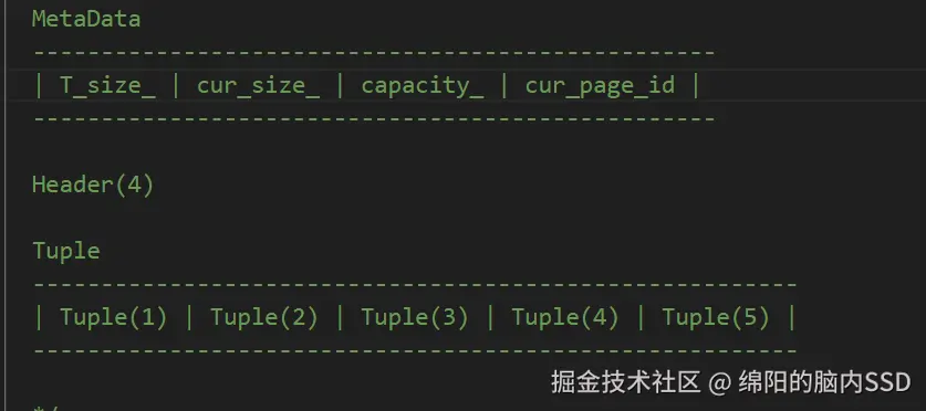 首先说元数据, 需要一个t_size来表示元组的大小、然后capacity表示SortPage一共能够储存多少元组、cur_size_表示当前储存了多少元组、cur_page_id表示当前页面的页面ID。