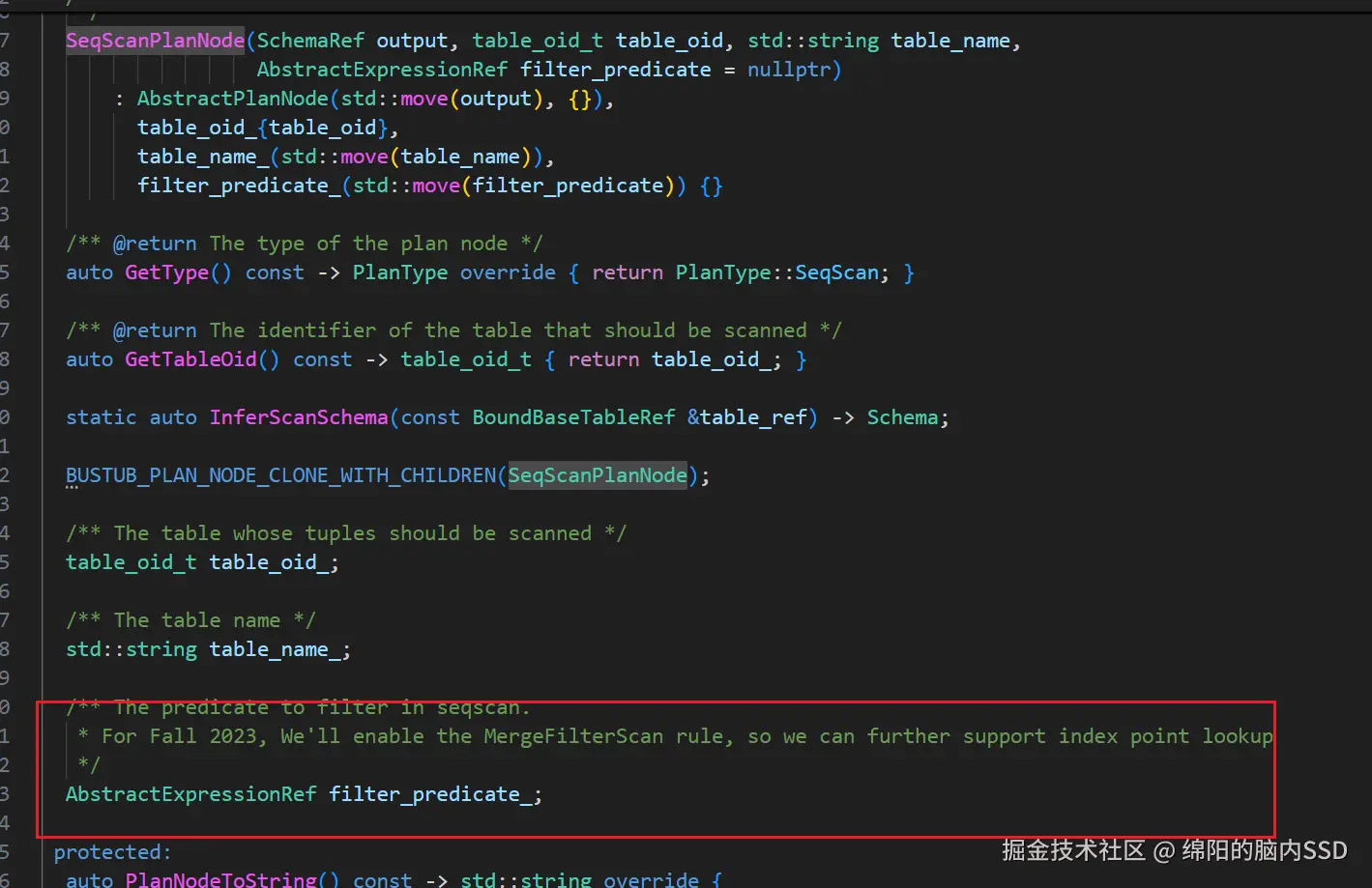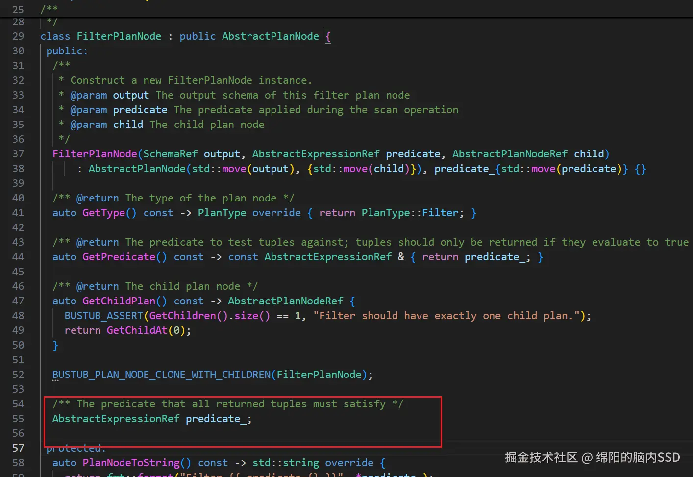 这里我要注意第二个问题, 就是关于过滤器。 过滤器原本是一个计划节点, 但是在Bustub中, 有一个过滤器下推优化器。 我现在看一下这个优化器:(我要注意, 这个优化器为官方实现, 不是本项目中的试验任务。)