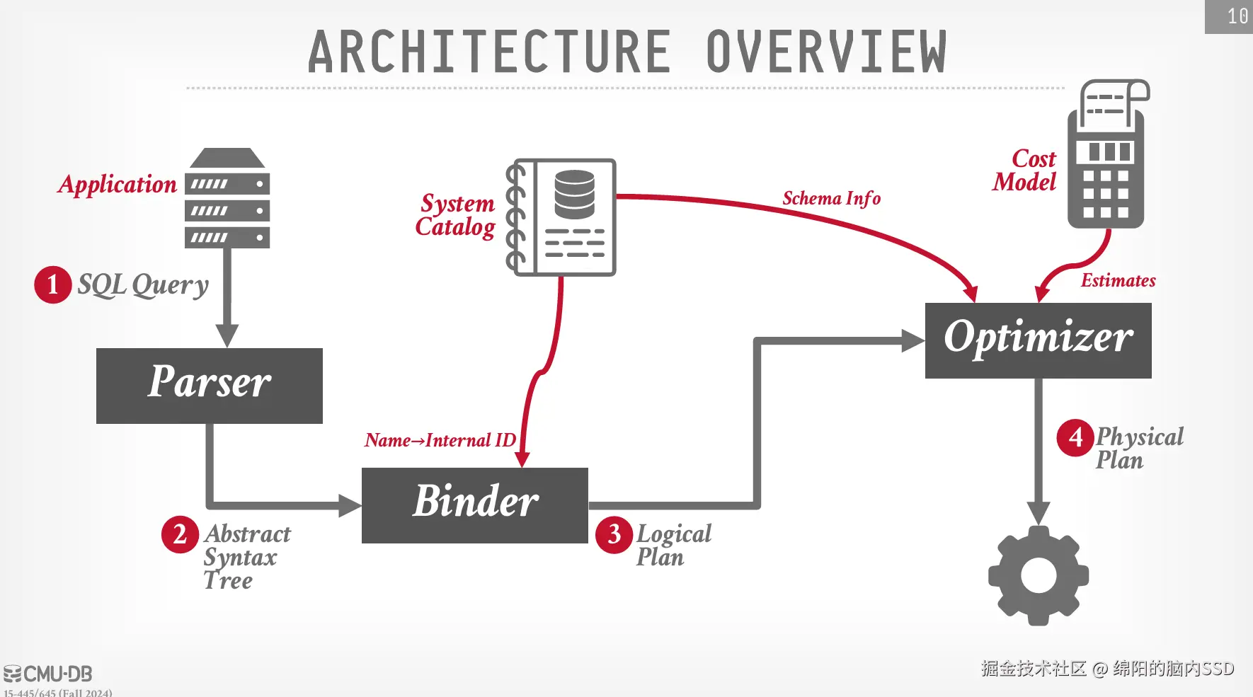 - 然后PlanNode作为输入传给Optimizer优化器, Optimizer将PlanNode优化成为真正要执行的物理计划。