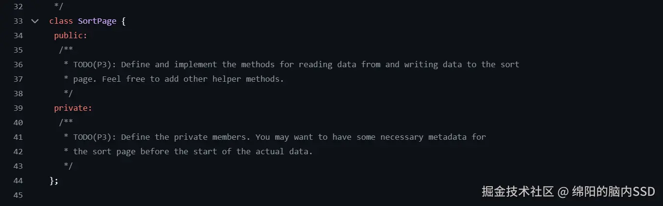 这个SortPage我们可以理解为类似于表堆内的page或者索引页。先获取BufferPool的一个帧的首地址, 然后在帧里面添加数据。官方代码只给我一个类, 没有给任何属性和方法, 说明要我全部自己设计。 下面为设计流程: