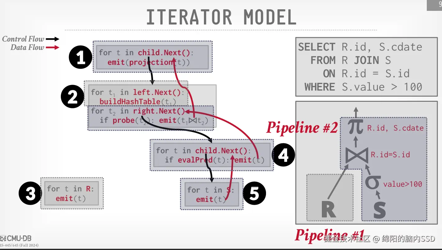- 在这张图中, R是扫描执行器, S也是扫描执行器并且带有过滤谓词value > 100。 然后两者的父节点就是一个聚合操作, 最上层为投影谓词。