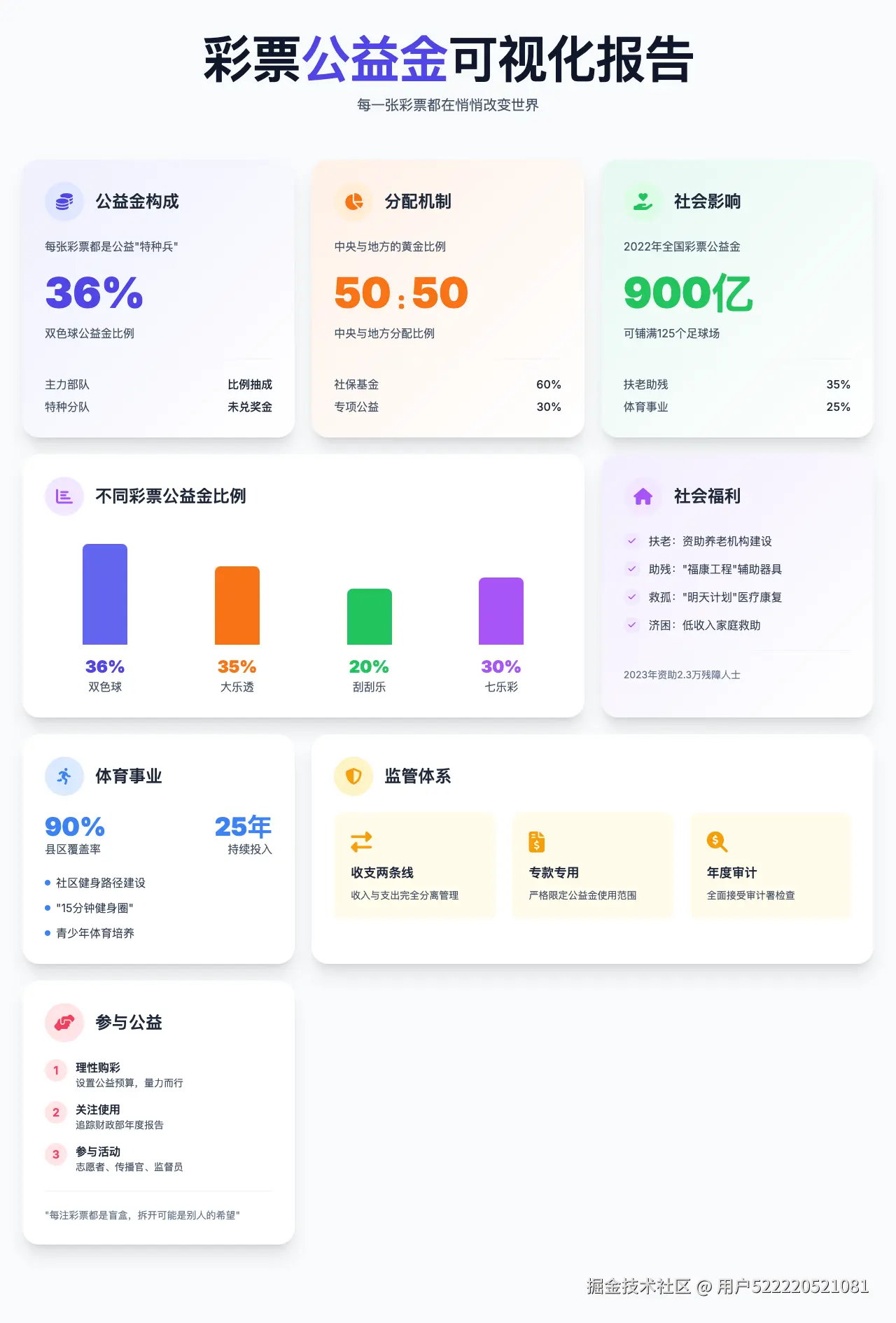 - 2. 地方解密:关注本地福彩公众号,比如上海体彩的"数说公益"长图,直接看到你贡献的钱变成了社区健身器材