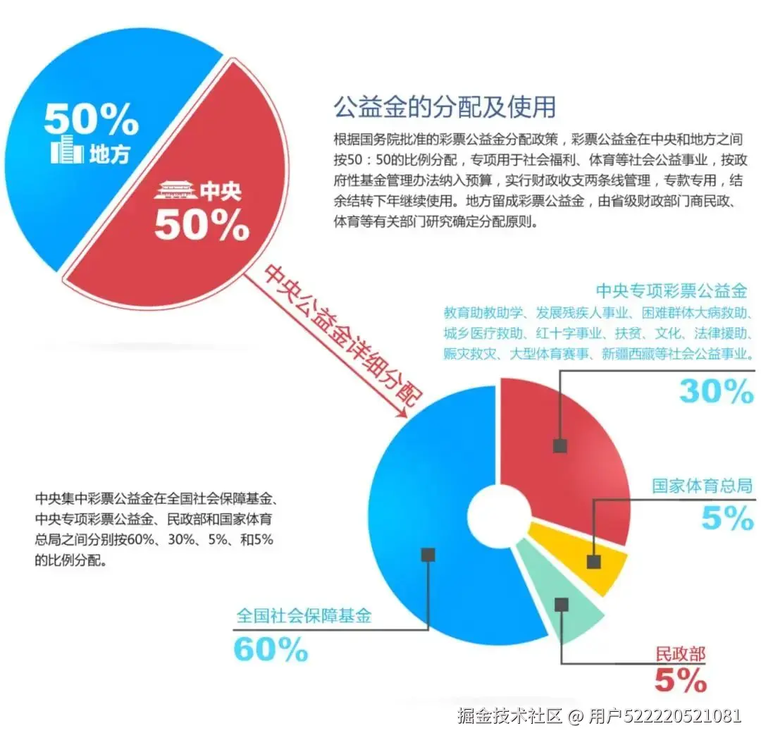 - • 主力部队:每卖出一张彩票,就按比例抽成的公益资金(比如双色球抽36%)