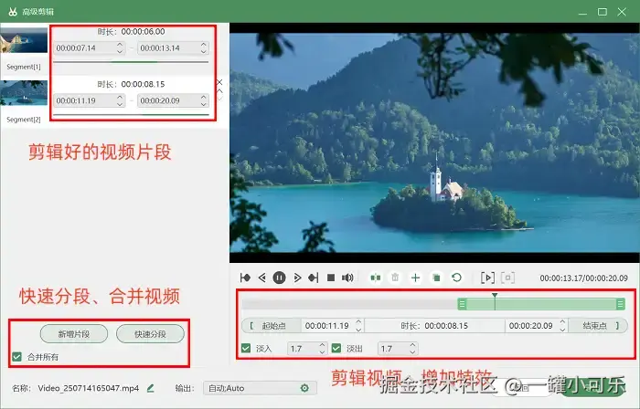 步骤3:录完后,你还可以在软件的 “历史录制” 里找到录制好的视频,进行剪辑、合并、添加转场特效等操作。