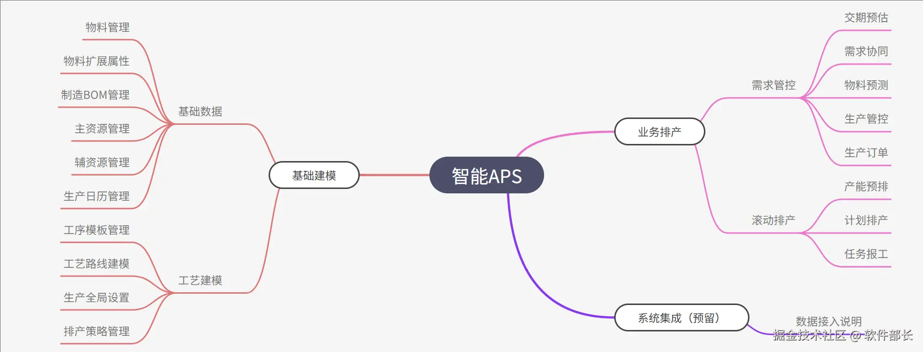 1、重构APS的功能目录架构,如下图所示,按照基础建模与业务滚动排产的分类