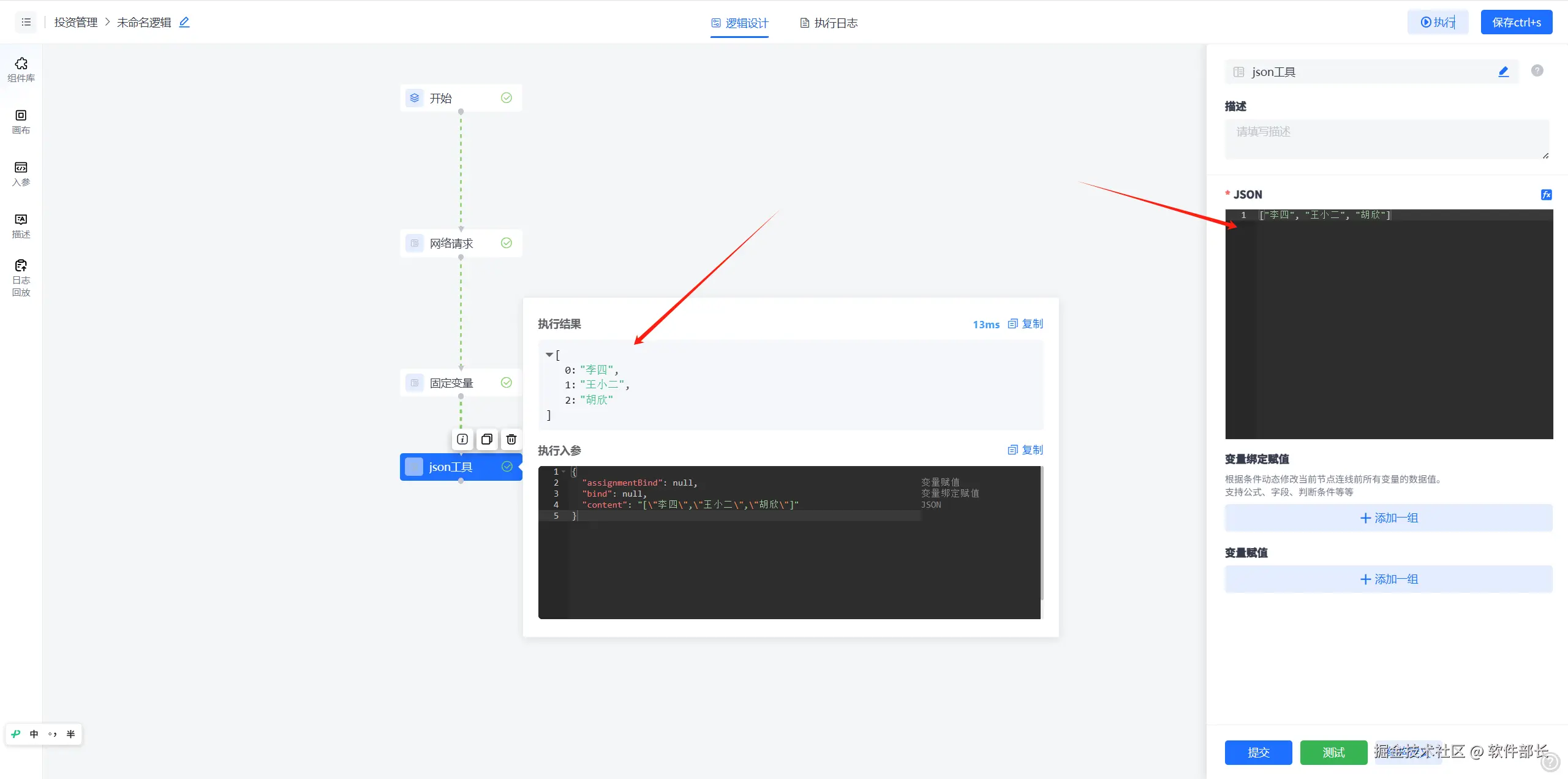 1、逻辑引擎【Json组件节点】新增支持初始化数组数据。