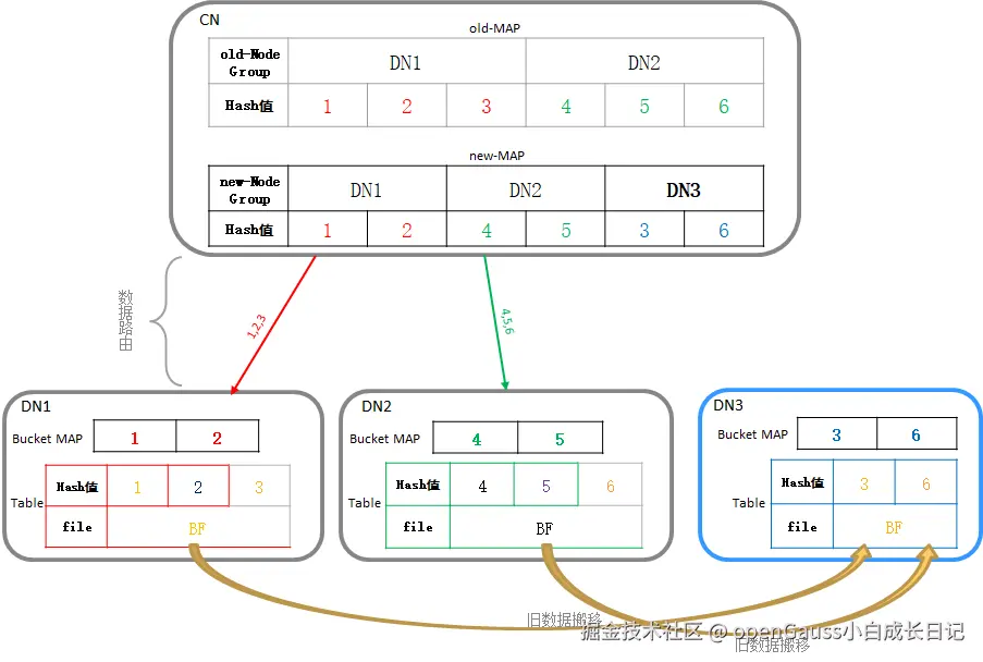 数据重分布示意如下:
