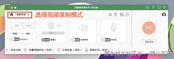 步骤1:首先需要你找到并打开这款软件,然后在主页面选择合适的录制录制模式。本文以 “视频录制” 为例。