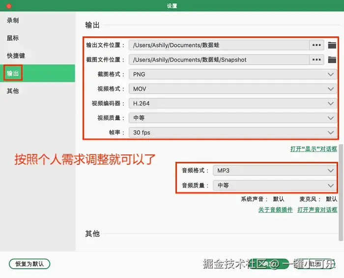 注意:如果你要录电脑内部的声音(比如播放的音乐或视频),QuickTime Player可能会有点力不从心,因为它默认不支持录制系统声音。