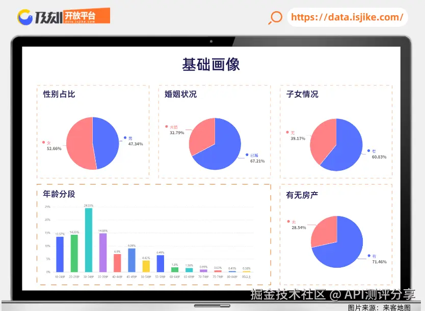 总的来说,这个区域人群画像分布API还是很有意思的,能给做市场调研的人提供很多数据支撑,感兴趣的可以调取接口体验。