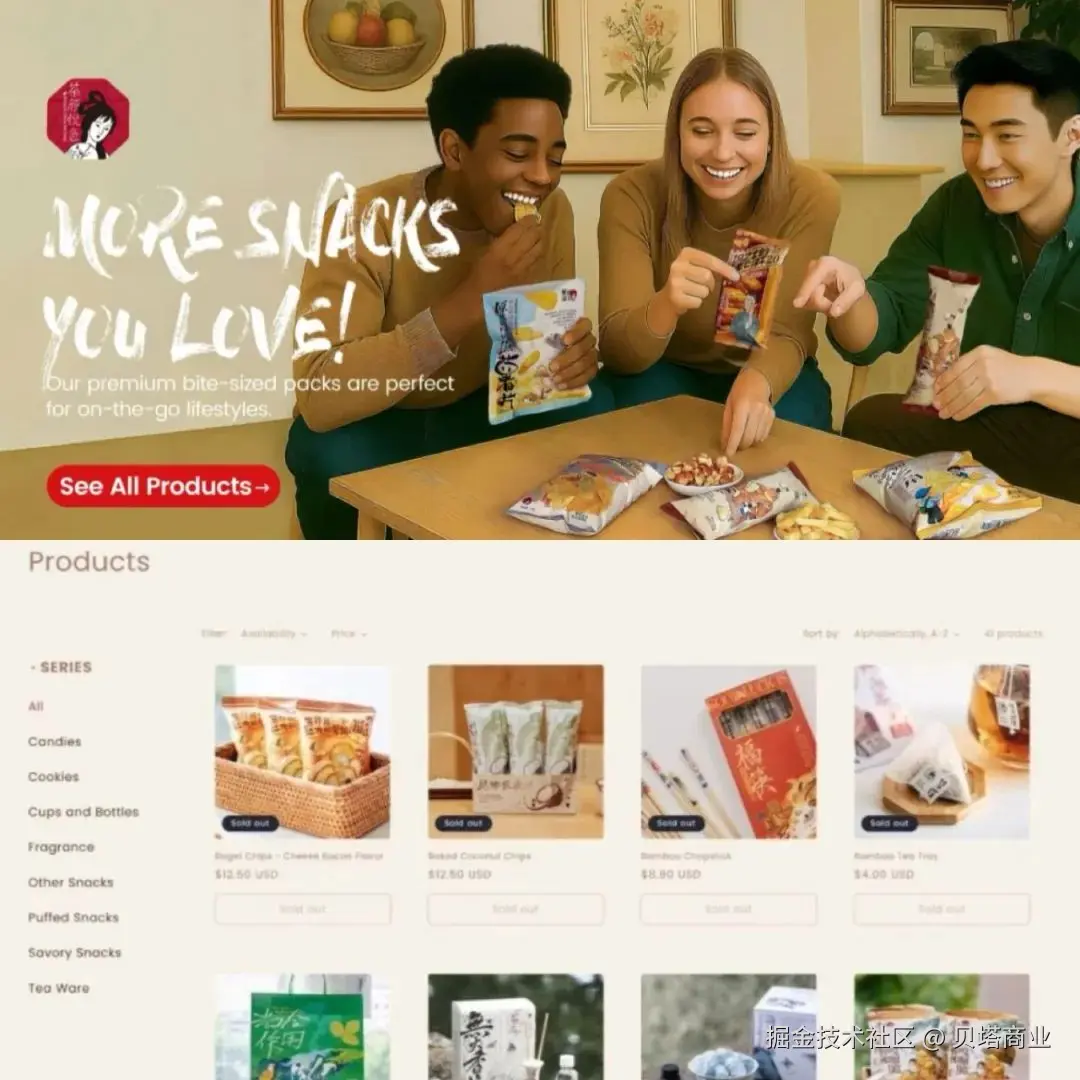 更巧的是,就在同一个月,茶颜悦色悄悄在美国开了线上店,用的是Shopify的独立站,还同步上线了亚马逊和TikTok Shop,卖的是碧根果、小鱼干一类的零食。而我喝到的这杯茶,是我点了“一问三不栀”之后,店员笑眯眯地喊了一句:“小主,您的饮品好啦~”