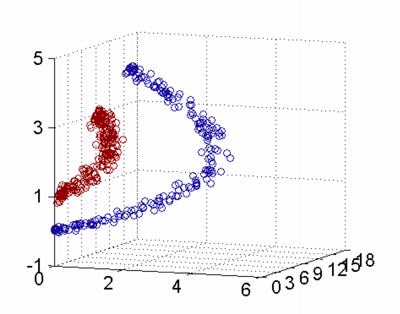 绿色的平面可以完美地分割红色和紫色,两类数据在三维空间中变成线性可分的了。