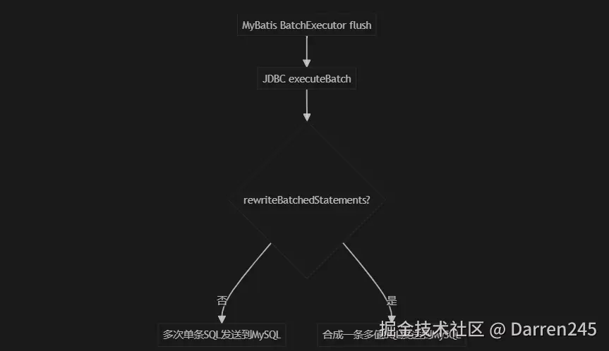 - JDBC驱动(MySQL Connector/J)源码中,只有加了rewriteBatchedStatements=true,才会在executeBatch时合并SQL。