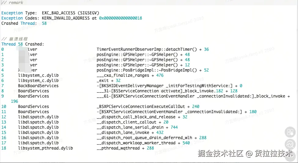 - 从崩溃堆栈分析,是