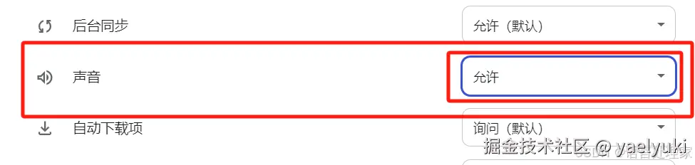 2.进入网站设置后,找到声音这个选项,将自动(默认)修改为允许即可