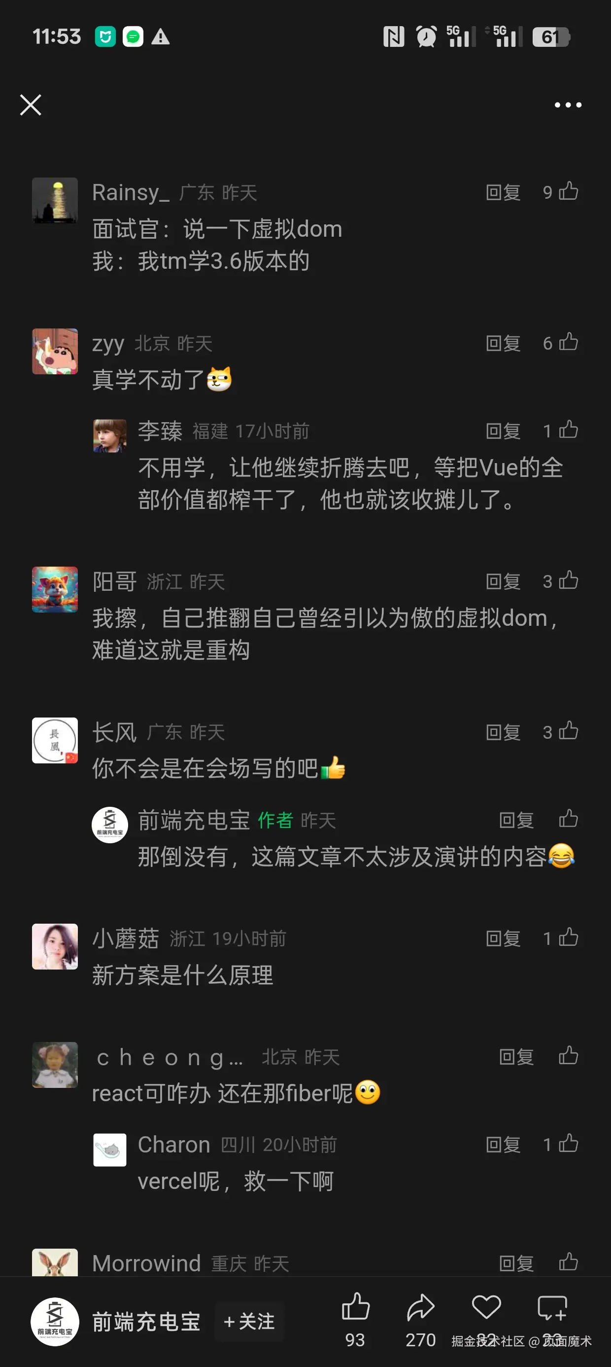 接下来我也会开始抽空钻研一下无虚拟 DOM 版 Vue 的源码,毕竟这玩意在面试时是一定会考的,关注一下,我会为大家续写 Vue Vapor 的原理解析。
