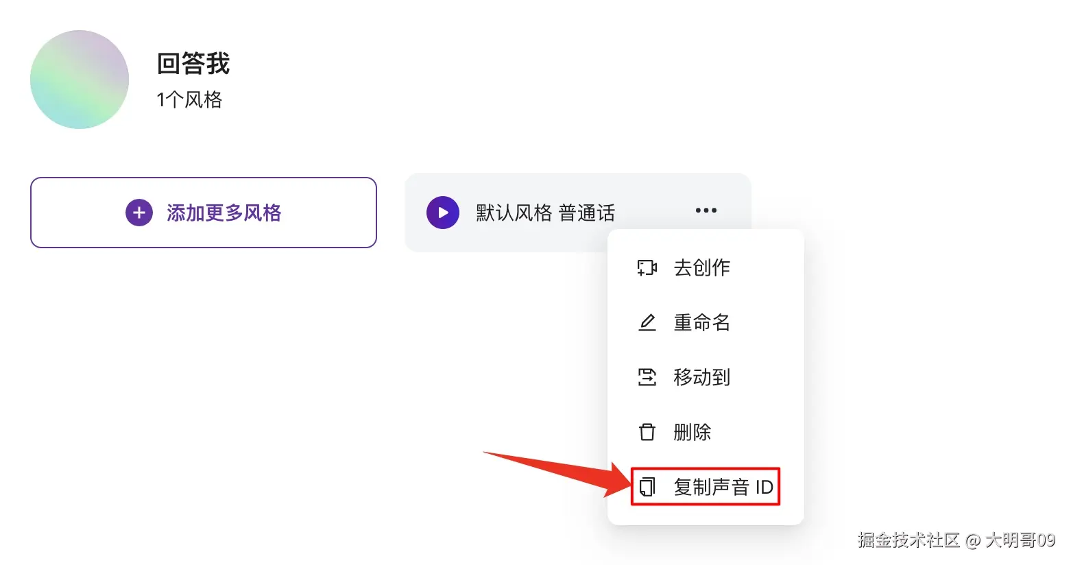 上传完成后,进入该声音的详情页面,复制它的声音 id:
