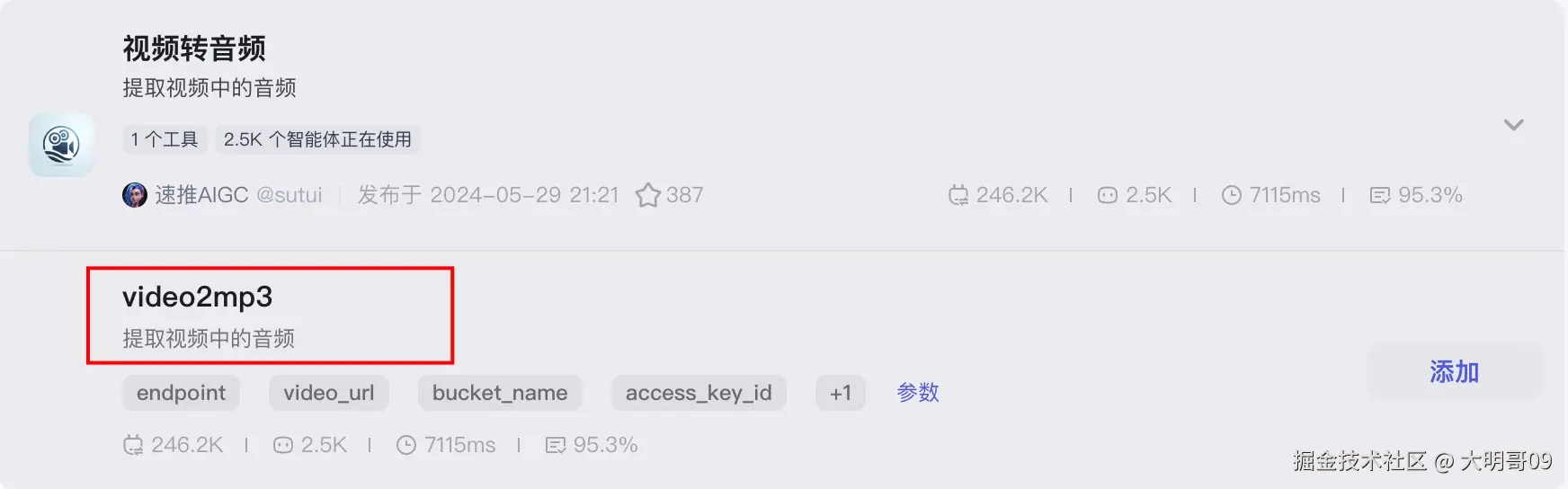 - 一种是利用 Coze 的插件,提取视频中的音频,然后将其上传到 「飞影数字人」的官网中,制作自己的音频,拿到它的 id