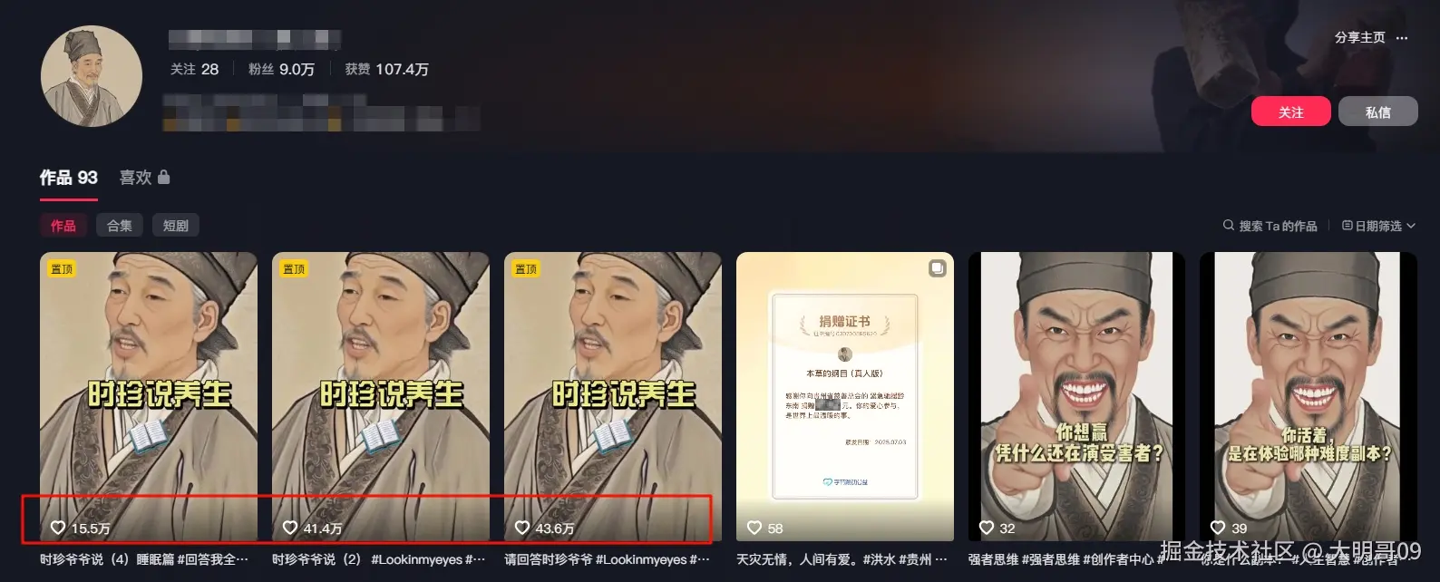 大明哥刷到一个博主的视频,三条视频点赞分别是 15.5 万、41.5万、43.6 万,就问你恐怖不恐怖?