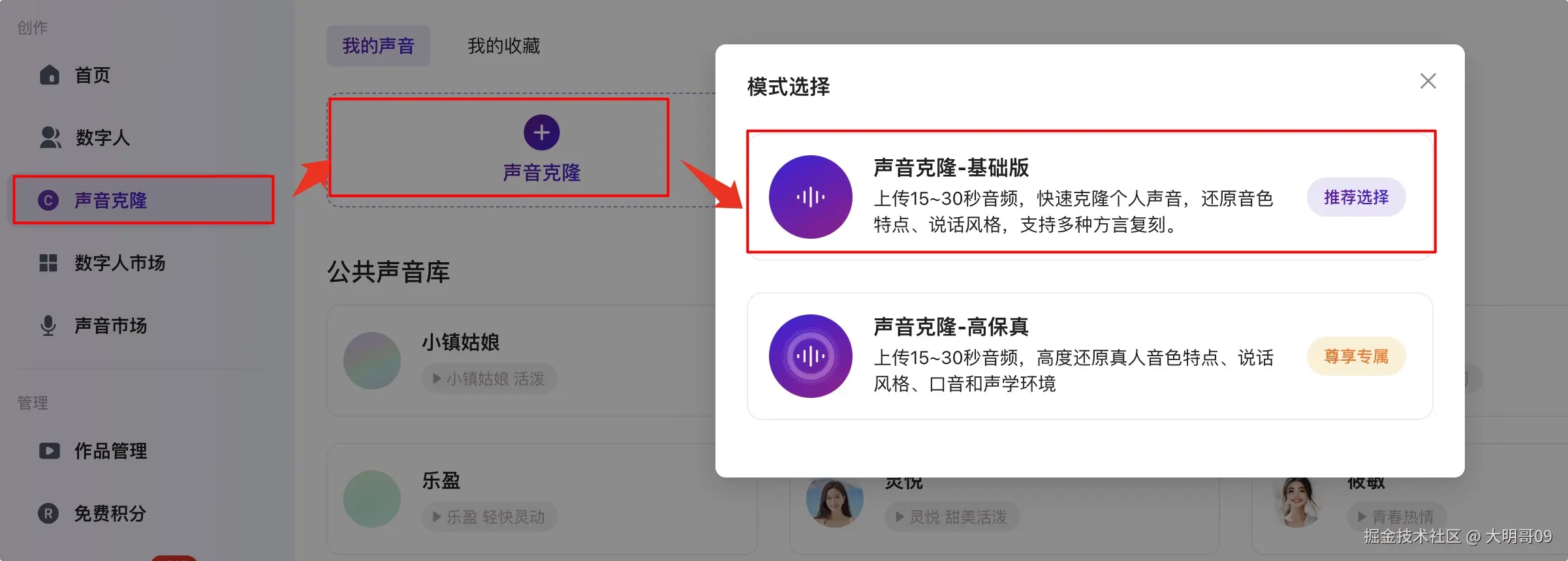 - 一种是去「飞影数字人」官网-声音克隆,找到合适的音频,然后复制它的 id