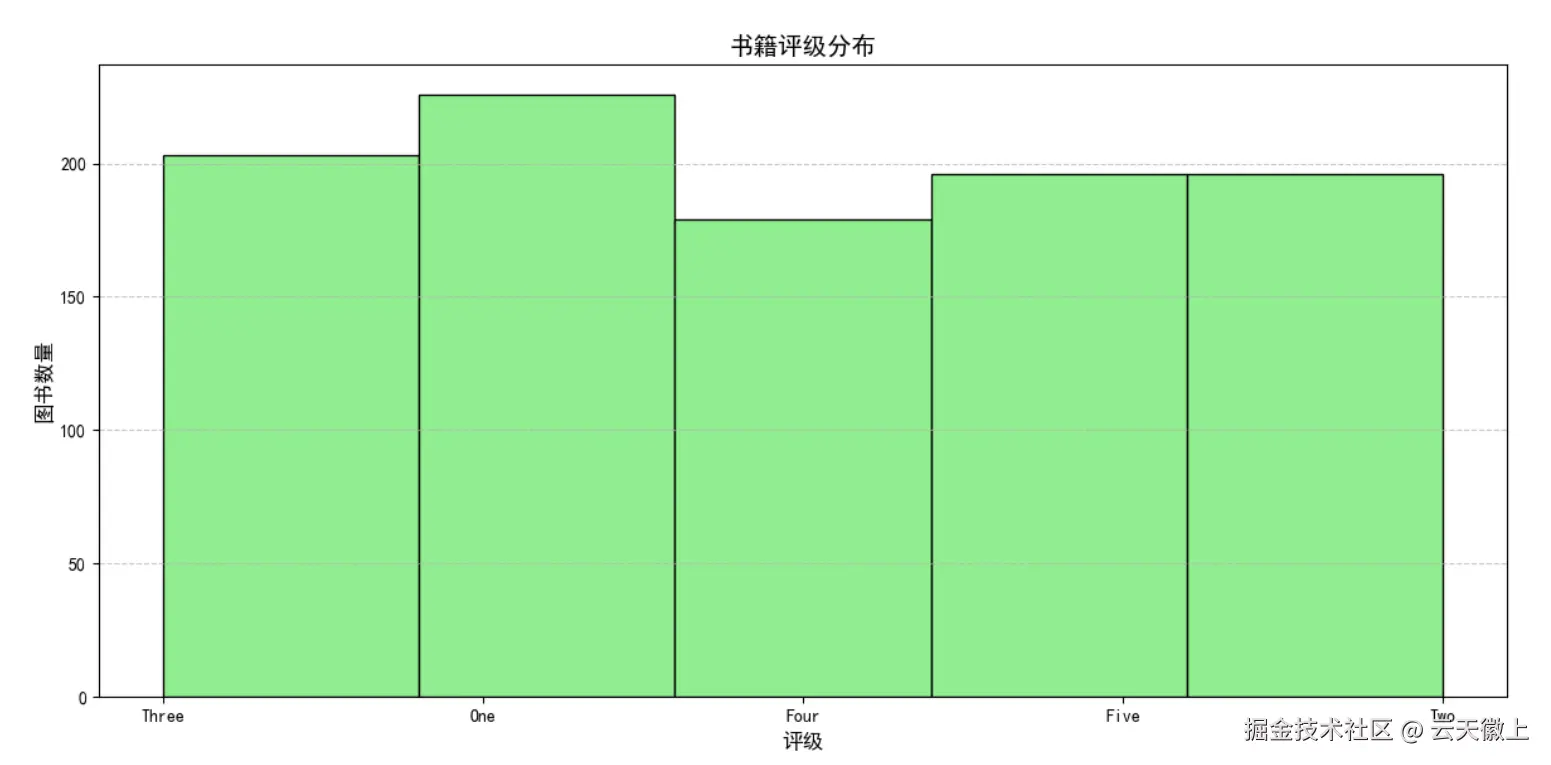 - 评级分布:书籍评级大多集中在4-5分,表明整体用户满意度较高。
