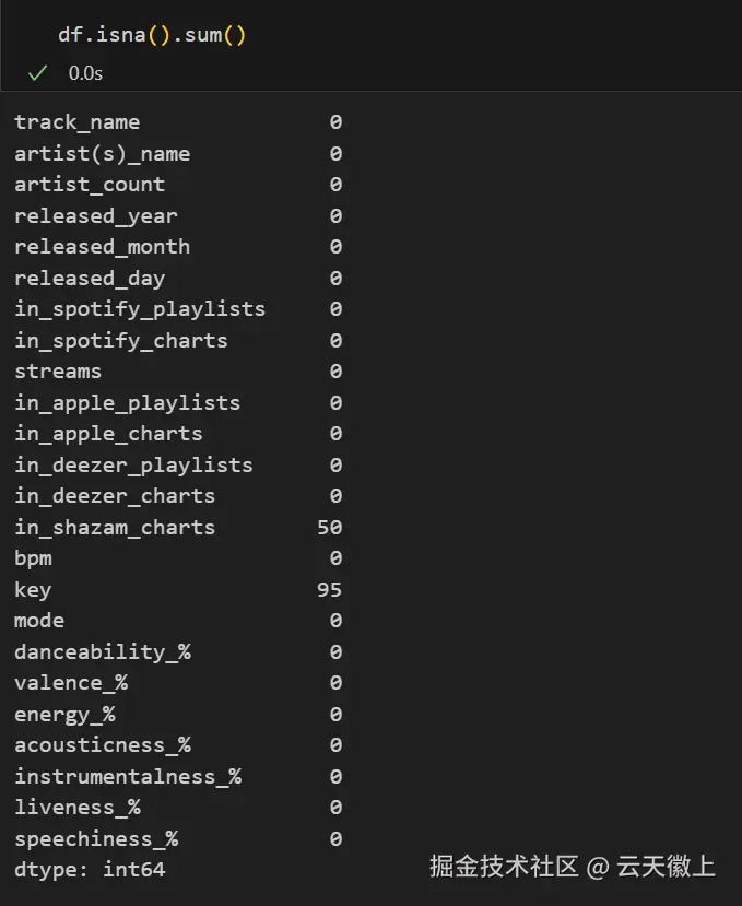 - in_apple_playlists:歌曲包含在Apple Music播放列表中的数量