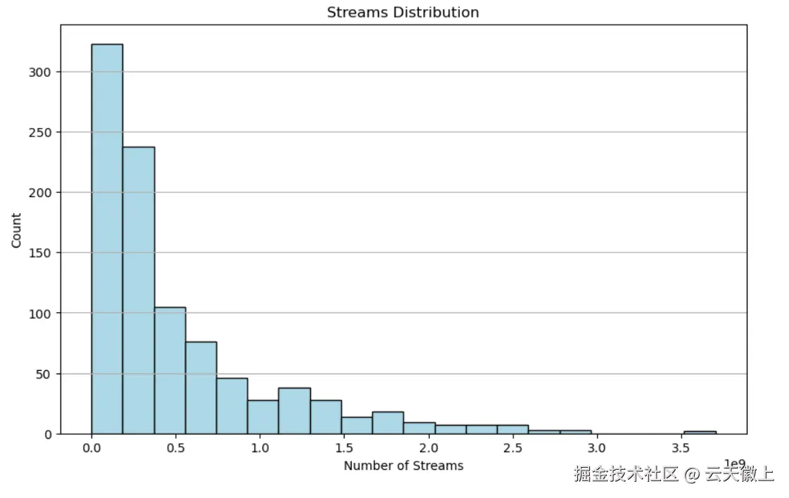 在当今音乐流媒体蓬勃发展的时代,数据分析对于音乐产业的决策制定至关重要。本文将利用2023年Spotify歌曲数据集,从多个维度进行可视化分析,深入探讨影响歌曲流行度和音频特征的关键因素。该数据集涵盖了丰富的信息,包括歌曲名称、艺术家姓名、流媒体统计数据和音频特征等,为音乐分析师和研究人员提供了宝贵的数据支持。以下分析将使用Matplotlib库实现,提供完整的代码示例,以供读者参考和复现。