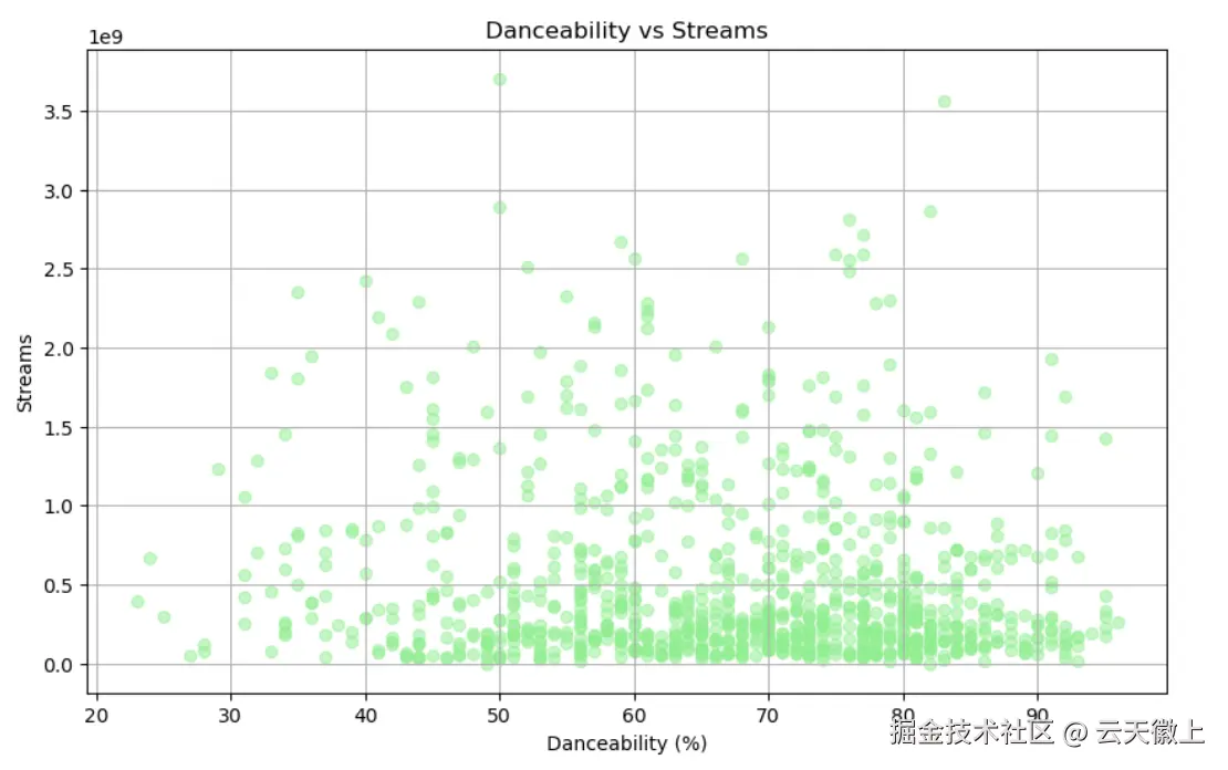 - 可舞性与播放次数关系:可舞性较高的歌曲通常获得更多的播放量。