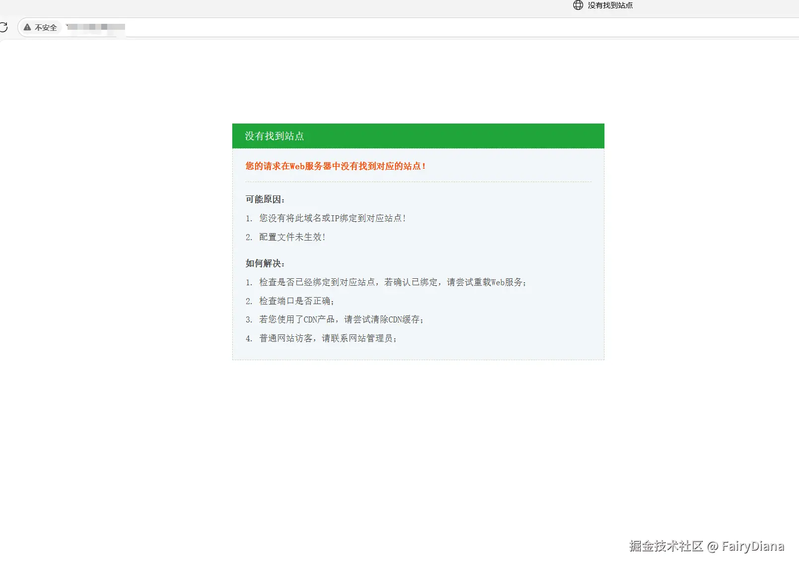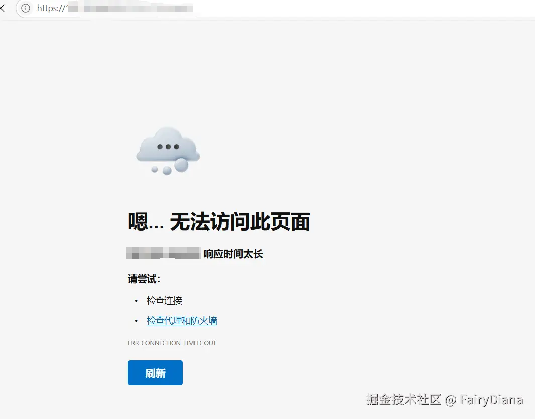 默认访问你服务器的公网 IP 显示无法处理此请求,注意这报错,和后面的报错是不同的,一个是无法访问端口,浏览器报错了,一个是可以访问端口,但是端口没有部署服务,服务器报错了