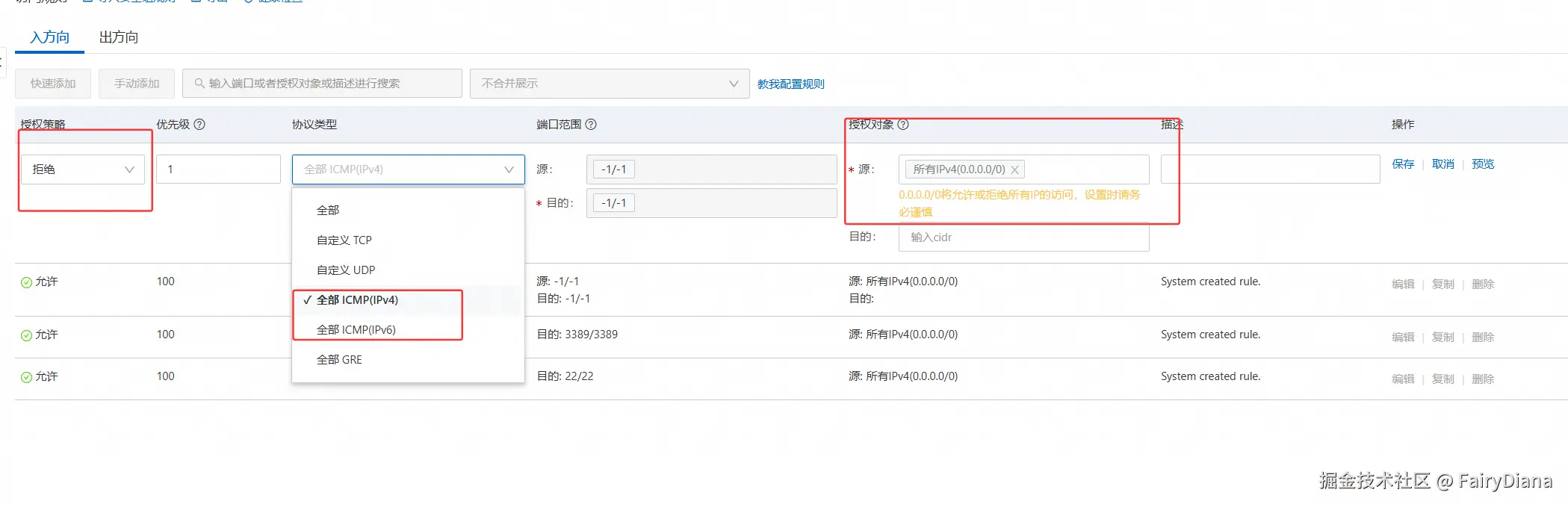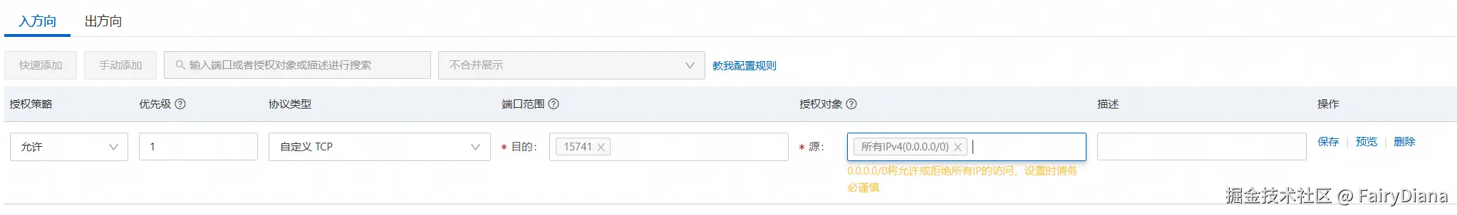 - 规则方向: 入方向