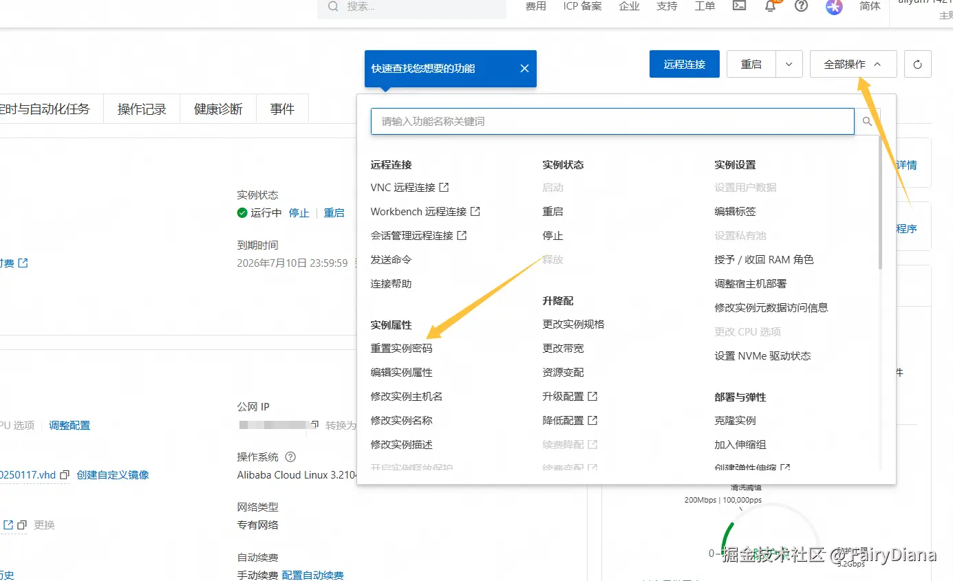 - 登录阿里云控制台,找到你的 ECS 实例。
