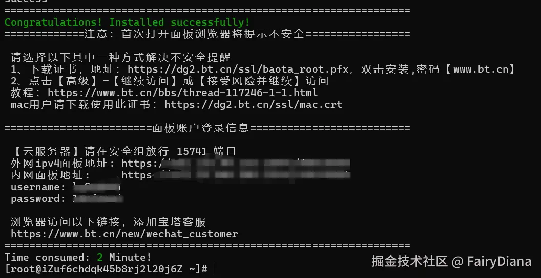 - 在浏览器中输入安装成功时显示的 外网面板地址