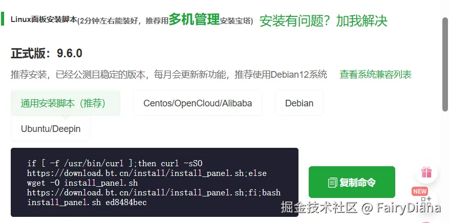 - 安装宝塔面板: