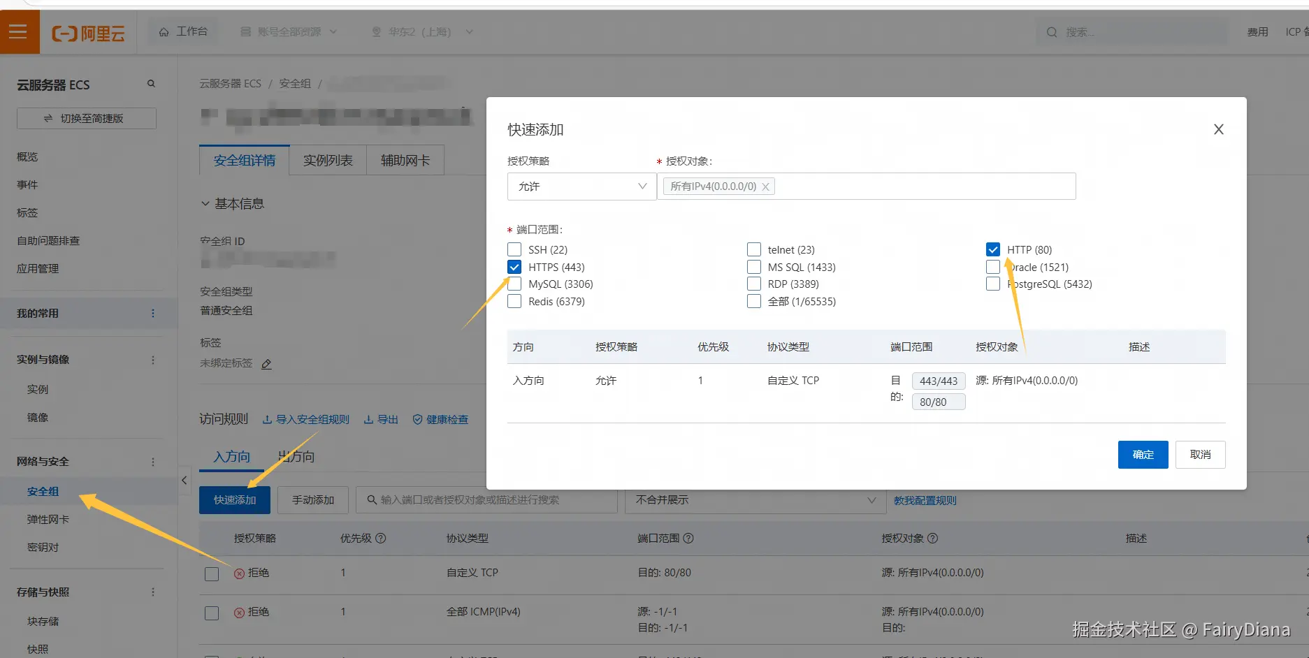 我们在阿里云控制面板安全组设置端口