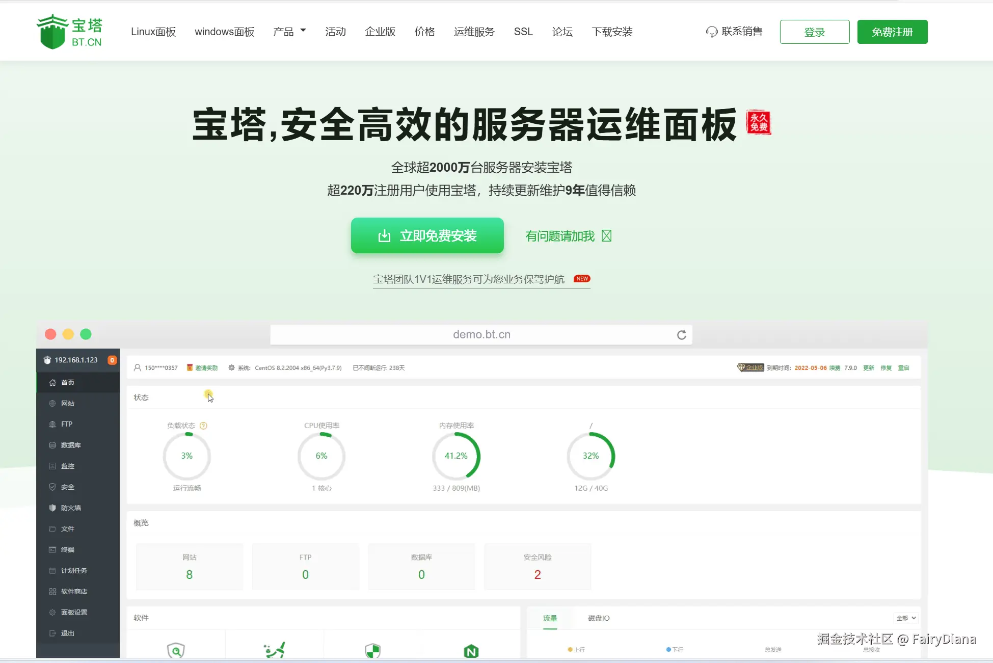 我们可以直接在浏览器上搜索宝塔面板进行下载安装即可: 宝塔面板(bt.cn) 简单好用的Linux/Windows服务器运维管理面板