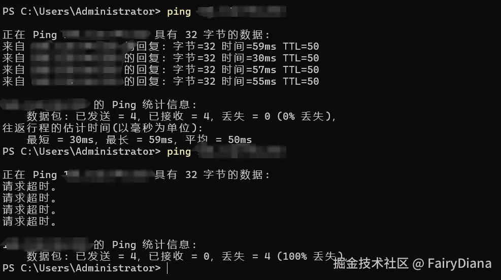 ping 你的服务器IP会显示超时。