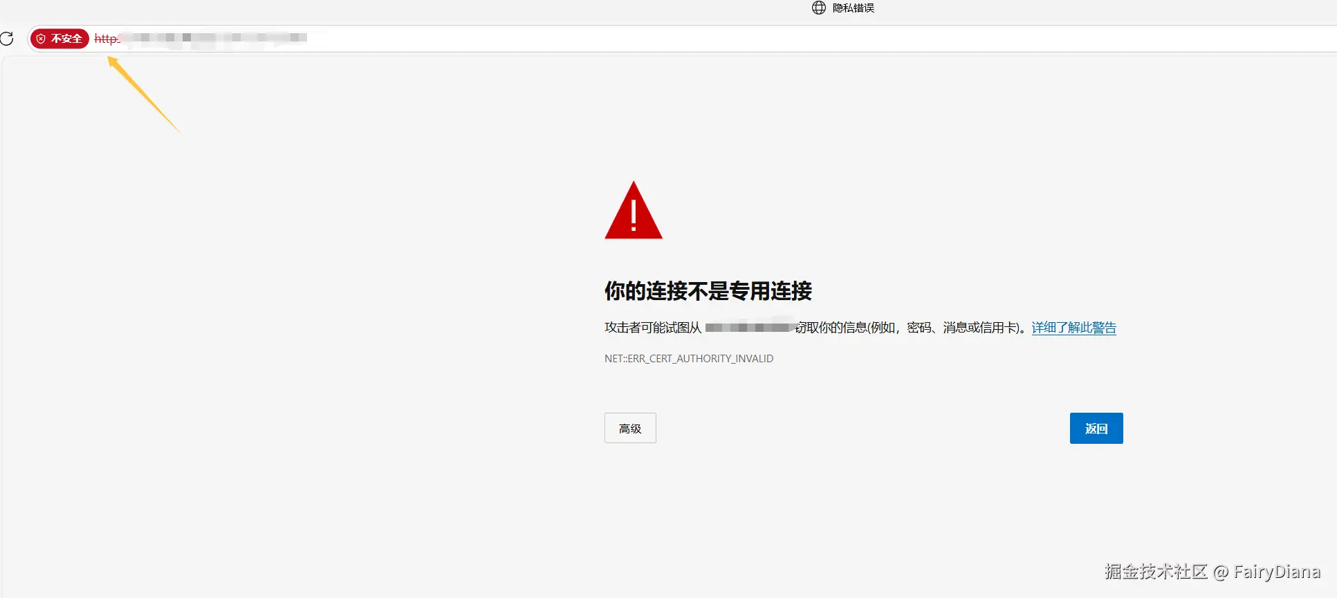 浏览器可能会提示 “您的连接不是私密连接” 或 “不安全” 警告。这是因为宝塔默认使用自签名的 HTTPS 证书,浏览器不信任它。HTTPS 依赖 TLS/SSL 加密和受信任的 CA 颁发的证书来保证安全。我们后续会介绍如何申请免费的可信证书。这里直接进入即可。