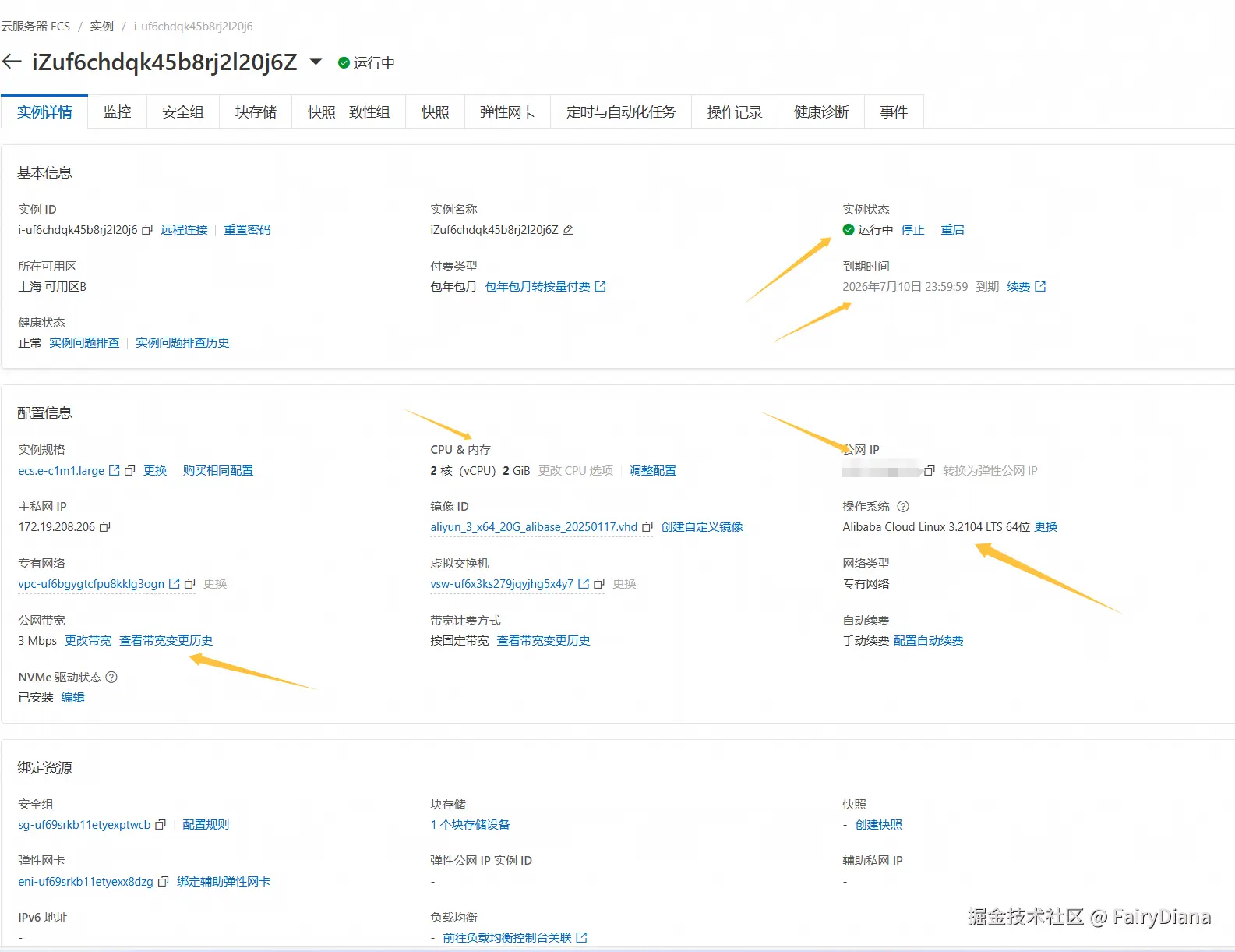 点击进入实例详情页,重点关注以下几个信息: