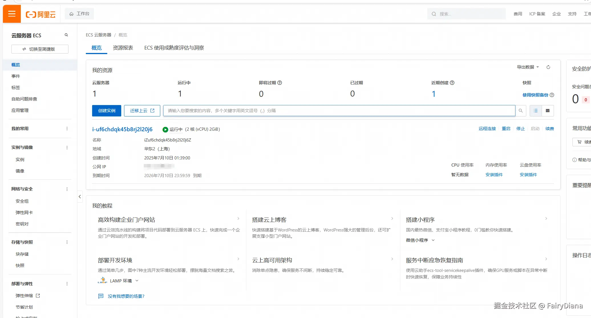 购买完成后,你可以在控制台看到你的服务器实例。